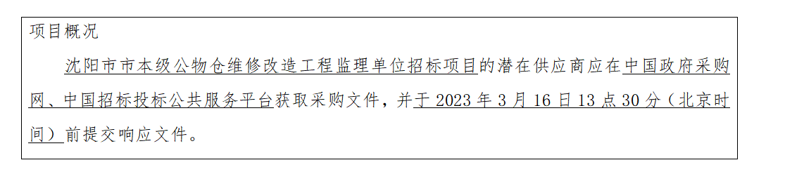 (沈陽(yáng)市市本級(jí)公物倉(cāng)維修改造工程監(jiān)理單位招標(biāo))采購(gòu)公告